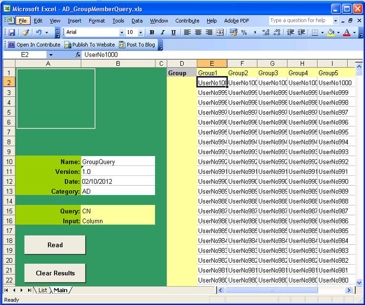 This spreadsheet is for the batch reading of multiple groups at the same time. For each group read the members LDAP attribute is enumerated so each member is listed in a cell.