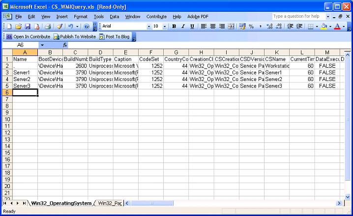 Within the WMI class worksheet, column A will contain the names of the computers queried and columns B and higher will contain the properties of the class.