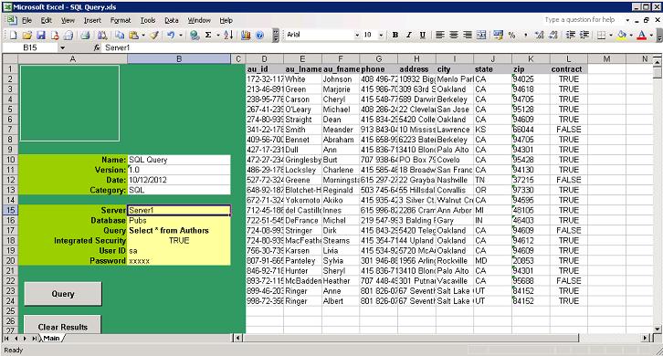 Populate the select query in Cell “B17” the SQL instance in Cell “B15” and the database in Cell “B16”.